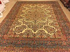 Aviram Aziz Inc. is the place to find these high quality Kerman rugs from Iran. We also carry a wide variety and selection of antique Oriental style rugs from other locations including Indian, Turkish, Caucasian, Chinese and European rugs. Choosing a Persian style rug should be a fun and enjoyable task.  These works of art come in a vast array of color palettes ranging from soft golden and beige to bold rich brillant colors sure to make a statement to anyone who comes upon them. You will have trouble deciding whether or not to put these amazing creations on the floor or keep them safe from walkers by hanging them on your walls. In fact, many of the famous master weavers used fine silks woven into the carpets to create the antique Kerman and other Persian rugs and numerous collectors hang these masterpieces on the walls.