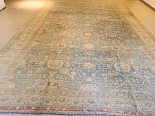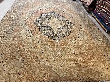 Our antique rugs’ collection includes Aubussons, Heriz and Serapi, Lavar and Kerman, Sarouk, Sultanabad, Tabriz, Oushak and Tapestries. Tabriz rugs are not distinguished necessarily by a specific pattern or color, although there are some common themes that one can recognize. Instead, these Persian rugs are known for their high quality and diversity of types. The tradition in Tabriz is one of the oldest in all of Iran. Within the rug-making world, families would pass down the skills as an heirloom for future generations. Centuries of rug weaving have resulted in the fine quality still seen with Tabriz rugs today.Â