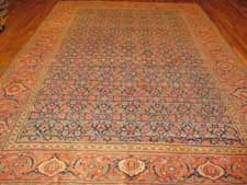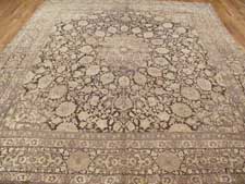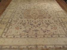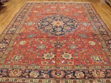 Our antique rugs’ collection includes Aubussons, Heriz and Serapi, Lavar and Kerman, Sarouk, Sultanabad, Tabriz, Oushak and Tapestries.  Tabriz rugs are not distinguished necessarily by a specific pattern or color, although there are some common themes that one can recognize.  Instead, these Persian rugs are known for their high quality and diversity of types.  The tradition in Tabriz is one of the oldest in all of Iran.  Within the rug-making world, families would pass down the skills as an heirloom for future generations.  Centuries of rug weaving have resulted in the fine quality still seen with Tabriz rugs today.