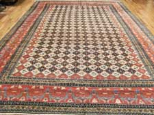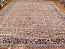 Patterns that were common to see with Tabriz rugs include a classical central medallion with a border weave of fish scales, leaves, stems or flowers.  The border design is often fine and detailed and has been described as lacelike.  Background color was usually cream, red or navy blue.  Coloration typically consisted of soft pastels.  Other patterns you may find include all over patterns or pictorial patterns.  We have a large collection of antique oriental rugs including Persian, Indian, Turkish, Caucasian, Chinese and European rugs. Tabriz rug designers were influenced by Oriental poetry and these influences often were manifested in the design of the rug pattern.  Pictorial patterns of falconry, battle scenes, palaces and even lions are occasionally seen.