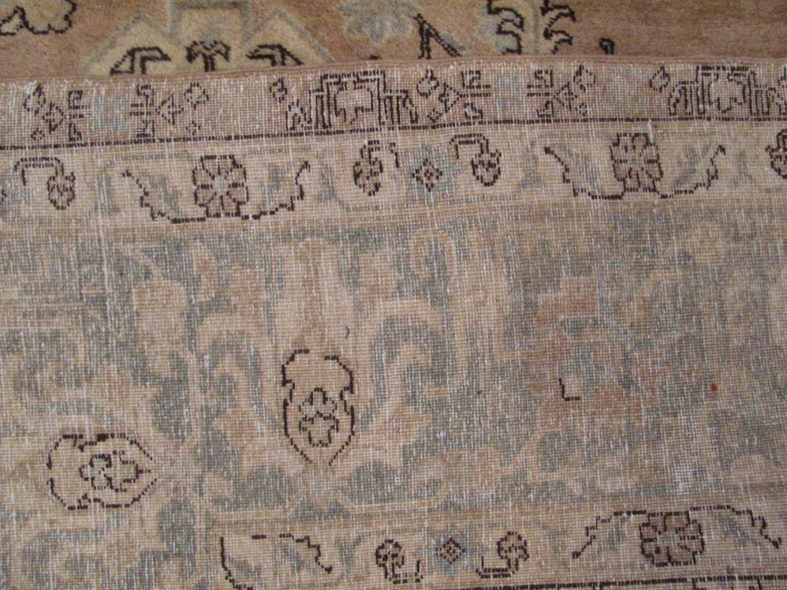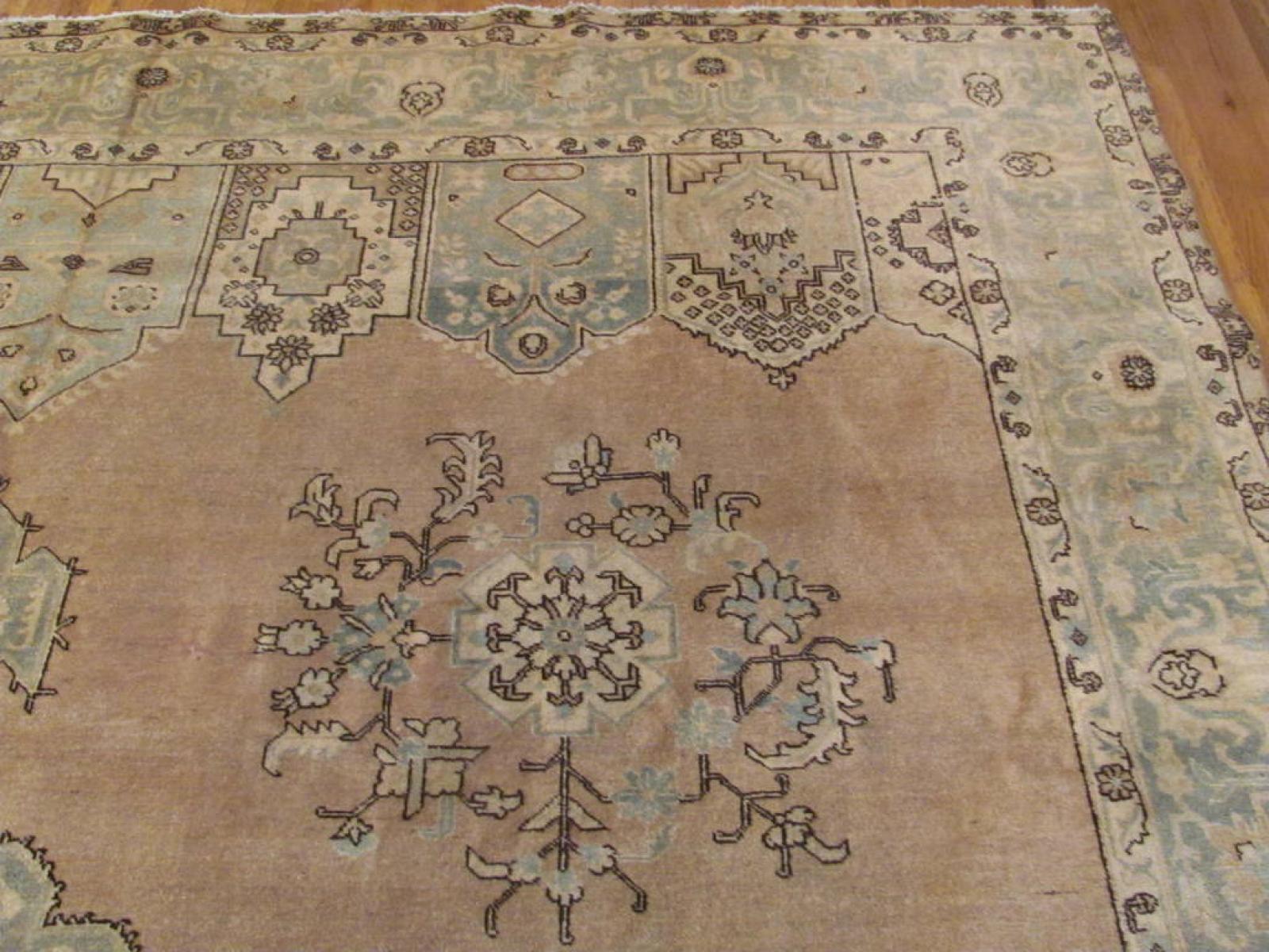 Patterns that were common to see with Tabriz rugs include a classical central medallion with a border weave of fish scales, leaves, stems or flowers.  The border design is often fine and detailed and has been described as lacelike.  Background color was usually cream, red or navy blue.  Coloration typically consisted of soft pastels.  Other patterns you may find include all over patterns or pictorial patterns.  We have a large collection of antique oriental rugs including Persian, Indian, Turkish, Caucasian, Chinese and European rugs. Tabriz rug designers were influenced by Oriental poetry and these influences often were manifested in the design of the rug pattern.  Pictorial patterns of falconry, battle scenes, palaces and even lions are occasionally seen.