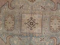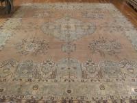 Our antique rugs’ collection includes Aubussons, Heriz and Serapi, Lavar and Kerman, Sarouk, Sultanabad, Tabriz, Oushak and Tapestries.  Tabriz rugs are not distinguished necessarily by a specific pattern or color, although there are some common themes that one can recognize.  Instead, these Persian rugs are known for their high quality and diversity of types.  The tradition in Tabriz is one of the oldest in all of Iran.  Within the rug-making world, families would pass down the skills as an heirloom for future generations.  Centuries of rug weaving have resulted in the fine quality still seen with Tabriz rugs today.
