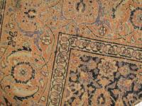 Patterns that were common to see with Tabriz rugs include a classical central medallion with a border weave of fish scales, leaves, stems or flowers.  The border design is often fine and detailed and has been described as lacelike.  Background color was usually cream, red or navy blue.  Coloration typically consisted of soft pastels.  Other patterns you may find include all over patterns or pictorial patterns.  We have a large collection of antique oriental rugs including Persian, Indian, Turkish, Caucasian, Chinese and European rugs. Tabriz rug designers were influenced by Oriental poetry and these influences often were manifested in the design of the rug pattern.  Pictorial patterns of falconry, battle scenes, palaces and even lions are occasionally seen.