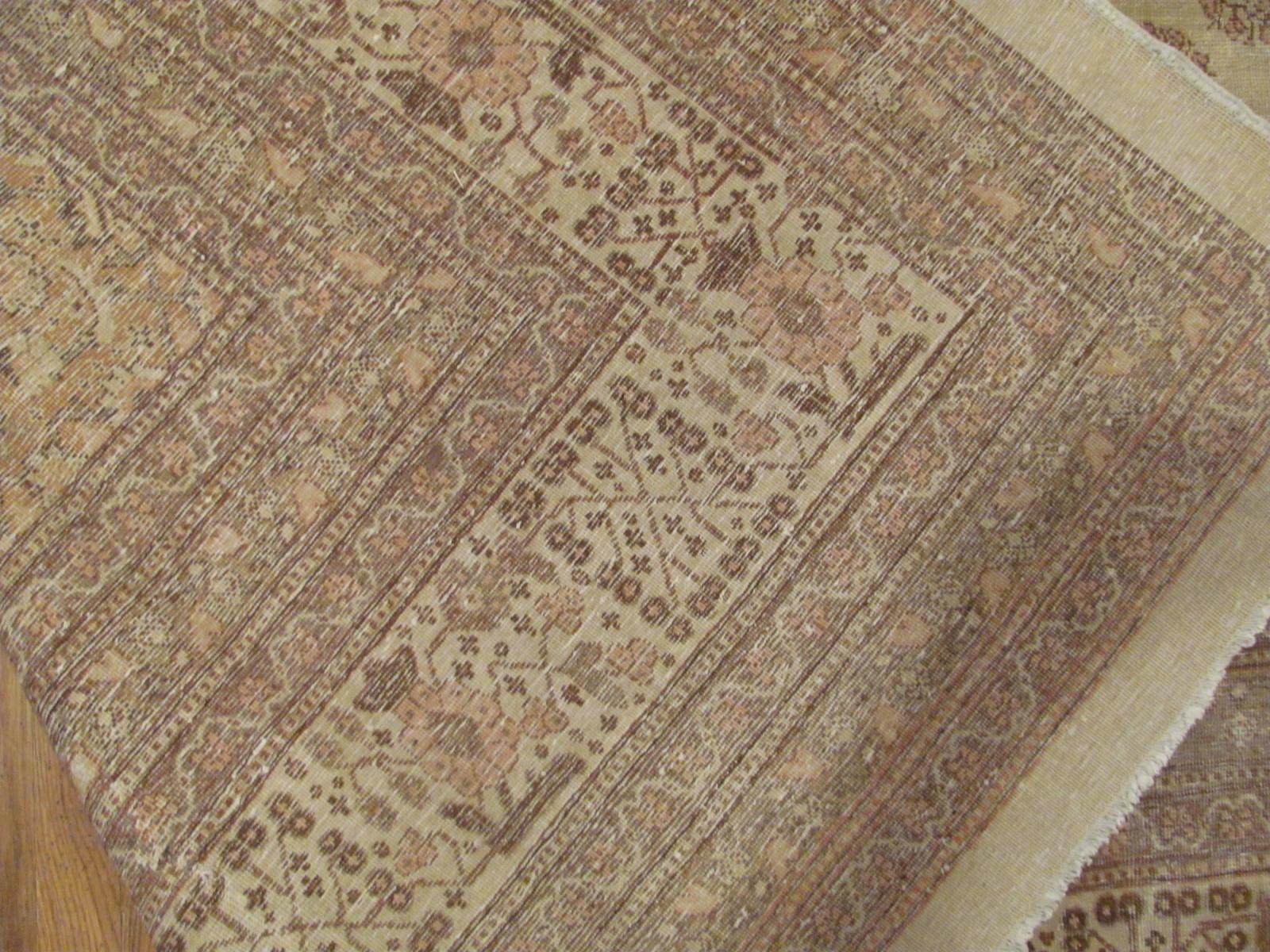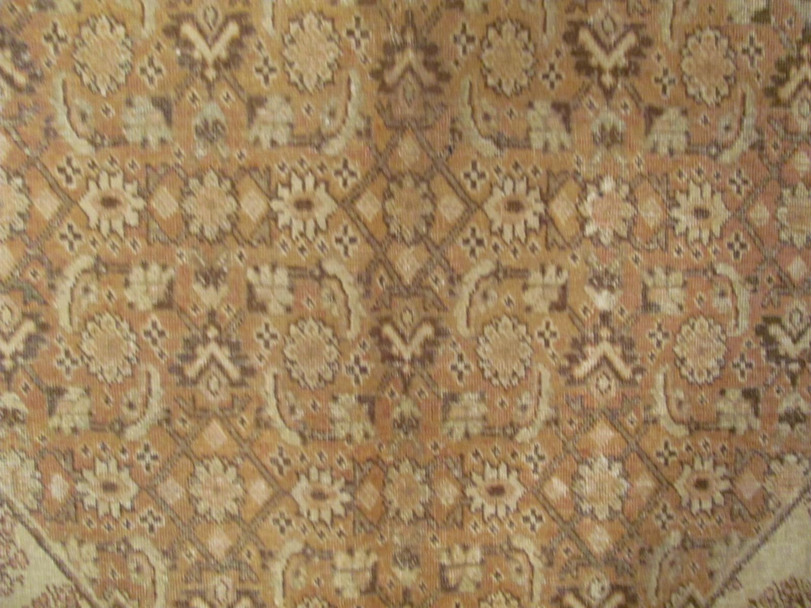 Patterns that were common to see with Tabriz rugs include a classical central medallion with a border weave of fish scales, leaves, stems or flowers.  The border design is often fine and detailed and has been described as lacelike.  Background color was usually cream, red or navy blue.  Coloration typically consisted of soft pastels.  Other patterns you may find include all over patterns or pictorial patterns.  We have a large collection of antique oriental rugs including Persian, Indian, Turkish, Caucasian, Chinese and European rugs. Tabriz rug designers were influenced by Oriental poetry and these influences often were manifested in the design of the rug pattern.  Pictorial patterns of falconry, battle scenes, palaces and even lions are occasionally seen.
