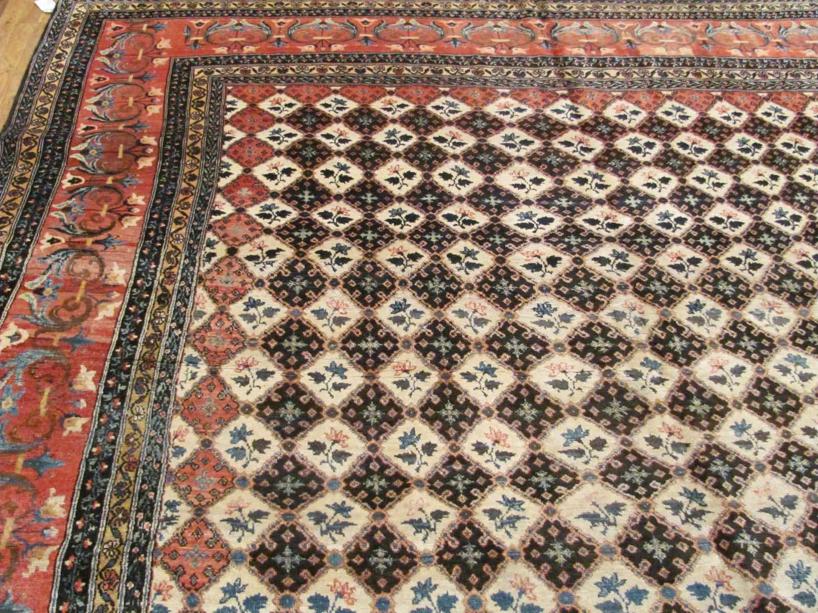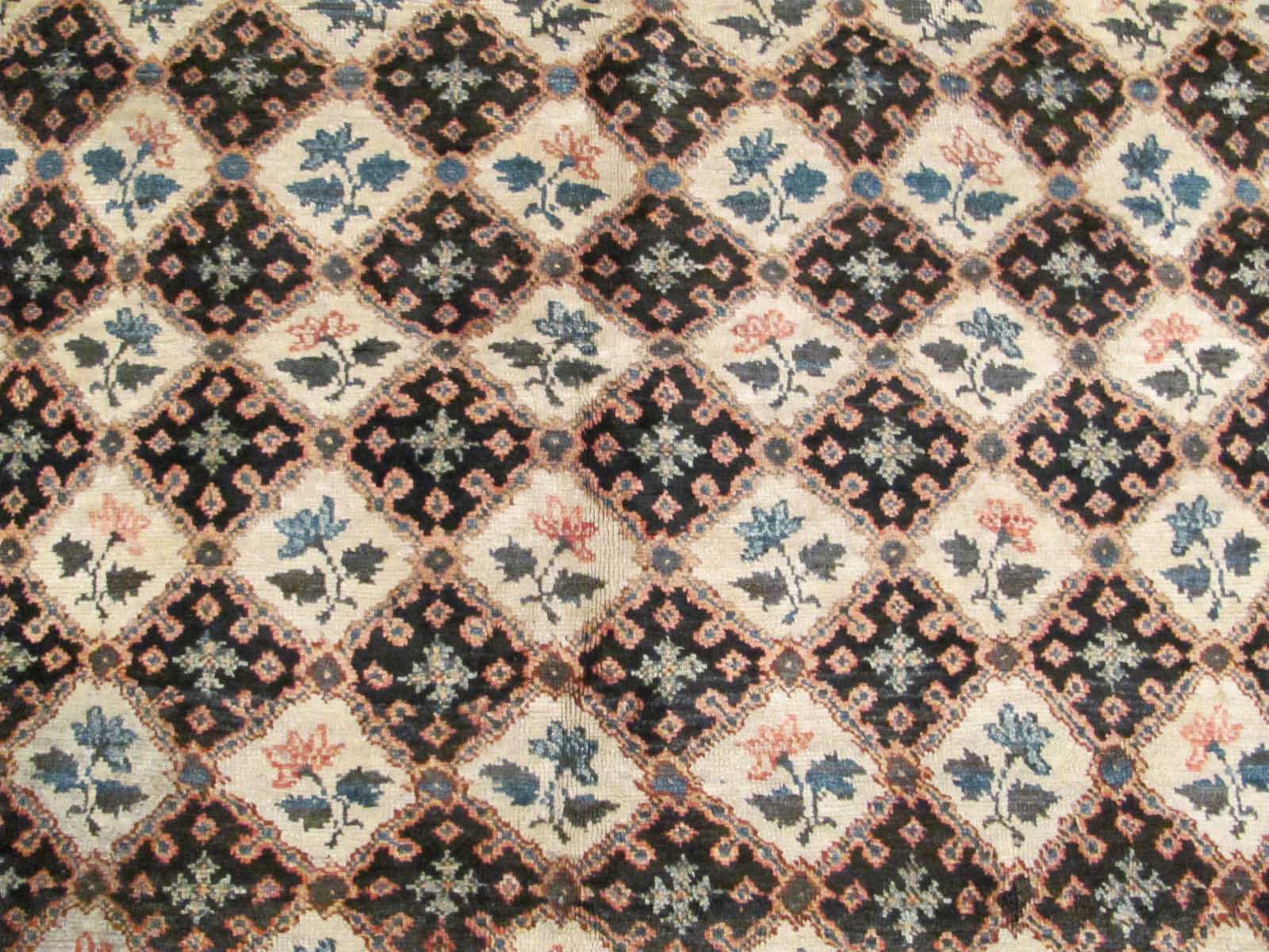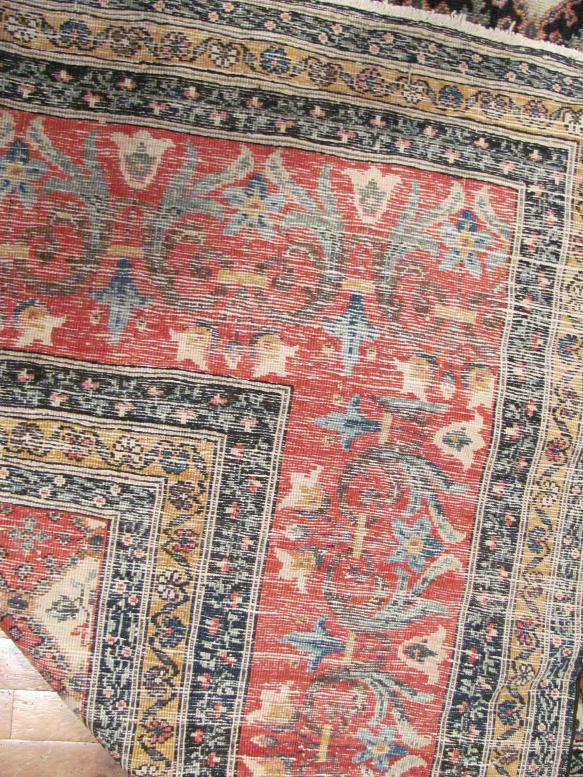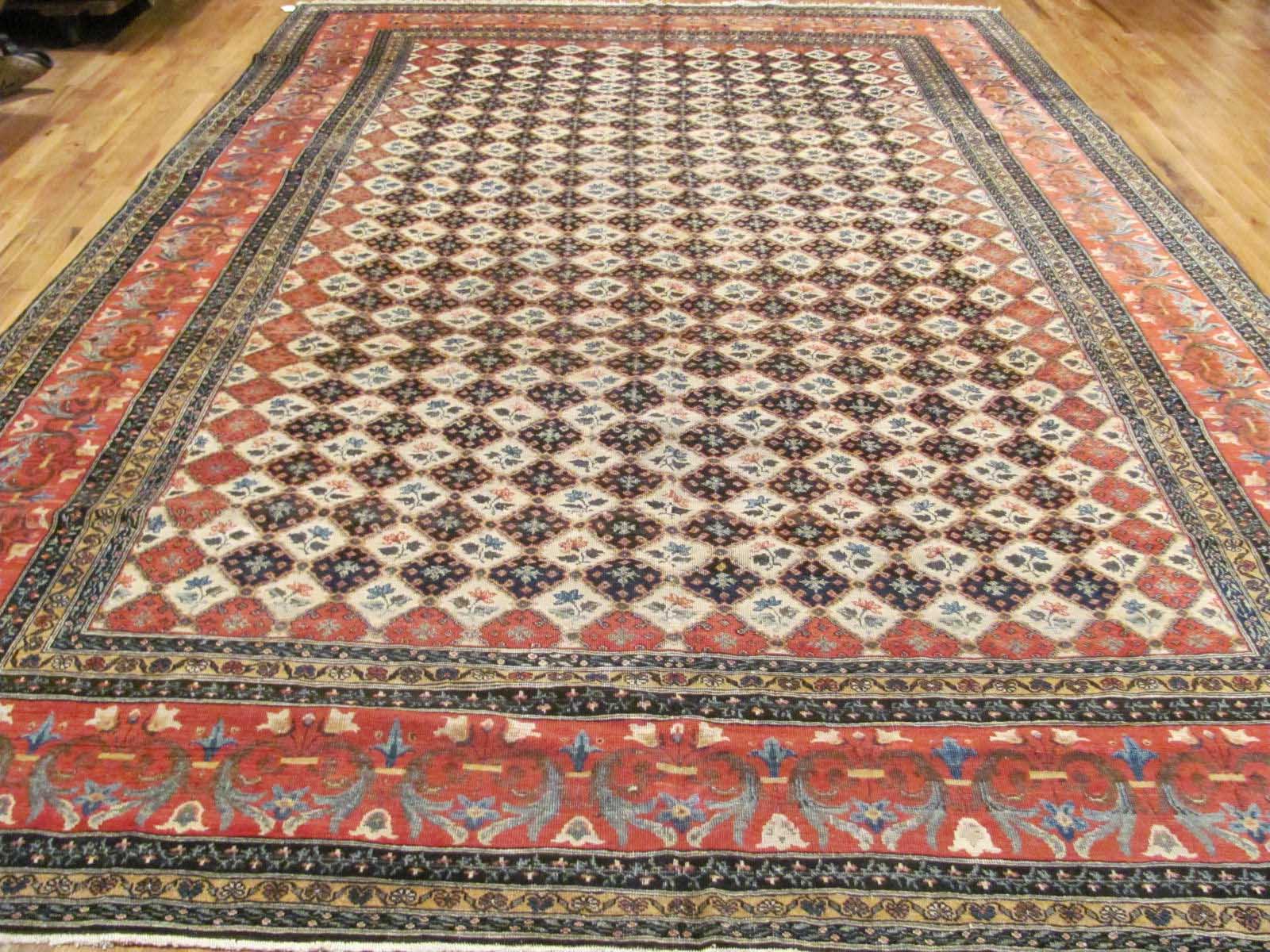 Our antique rugs’ collection includes Aubussons, Heriz and Serapi, Lavar and Kerman, Sarouk, Sultanabad, Tabriz, Oushak and Tapestries.  Tabriz rugs are not distinguished necessarily by a specific pattern or color, although there are some common themes that one can recognize.  Instead, these Persian rugs are known for their high quality and diversity of types.  The tradition in Tabriz is one of the oldest in all of Iran.  Within the rug-making world, families would pass down the skills as an heirloom for future generations.  Centuries of rug weaving have resulted in the fine quality still seen with Tabriz rugs today.
