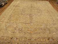 Our antique rugs’ collection includes Aubussons, Heriz and Serapi, Lavar and Kerman, Sarouk, Sultanabad, Tabriz, Oushak and Tapestries.  Tabriz rugs are not distinguished necessarily by a specific pattern or color, although there are some common themes that one can recognize.  Instead, these Persian rugs are known for their high quality and diversity of types.  The tradition in Tabriz is one of the oldest in all of Iran.  Within the rug-making world, families would pass down the skills as an heirloom for future generations.  Centuries of rug weaving have resulted in the fine quality still seen with Tabriz rugs today.