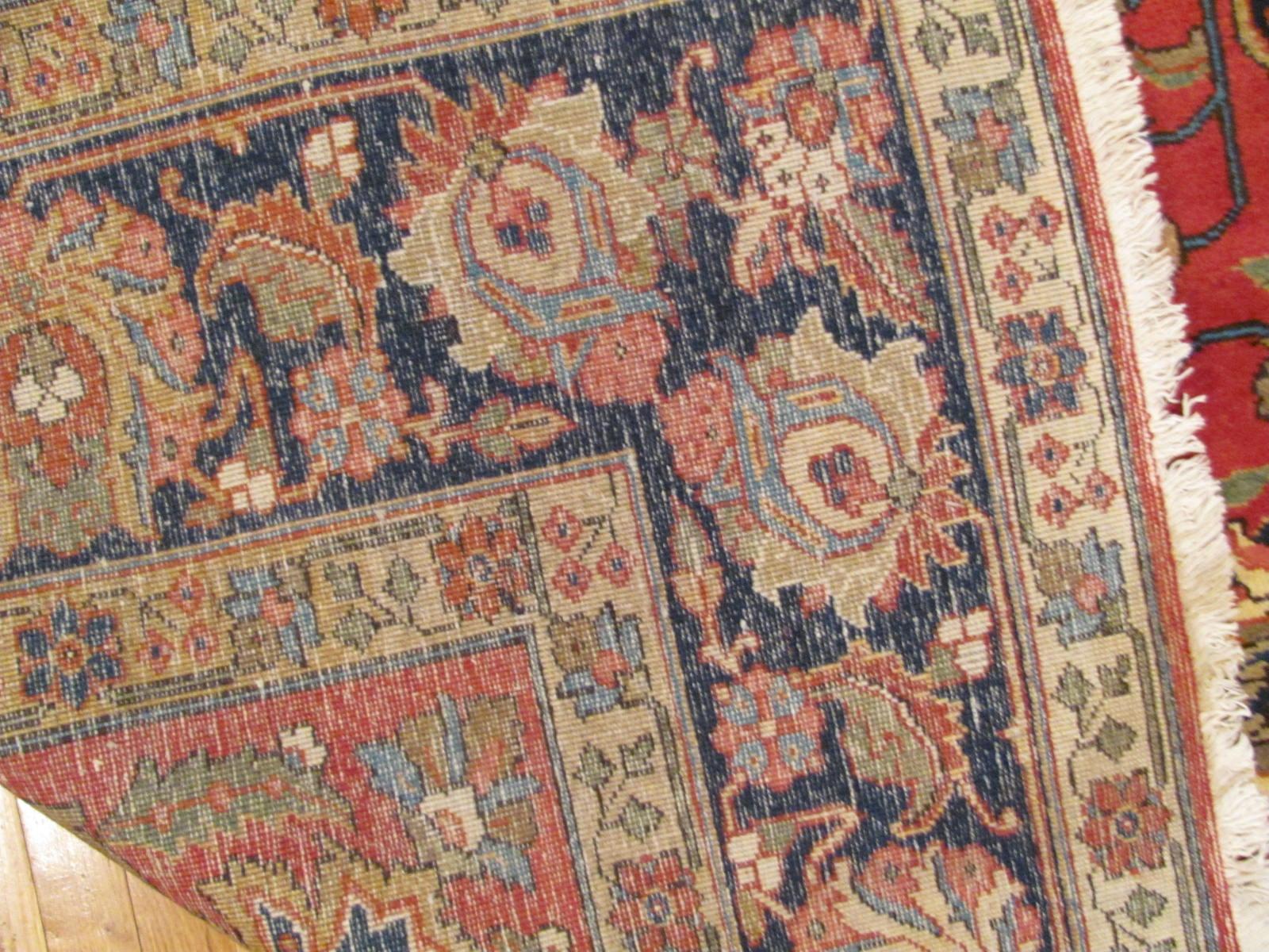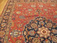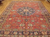 Patterns that were common to see with Tabriz rugs include a classical central medallion with a border weave of fish scales, leaves, stems or flowers.  The border design is often fine and detailed and has been described as lacelike.  Background color was usually cream, red or navy blue.  Coloration typically consisted of soft pastels.  Other patterns you may find include all over patterns or pictorial patterns.  We have a large collection of antique oriental rugs including Persian, Indian, Turkish, Caucasian, Chinese and European rugs. Tabriz rug designers were influenced by Oriental poetry and these influences often were manifested in the design of the rug pattern.  Pictorial patterns of falconry, battle scenes, palaces and even lions are occasionally seen.