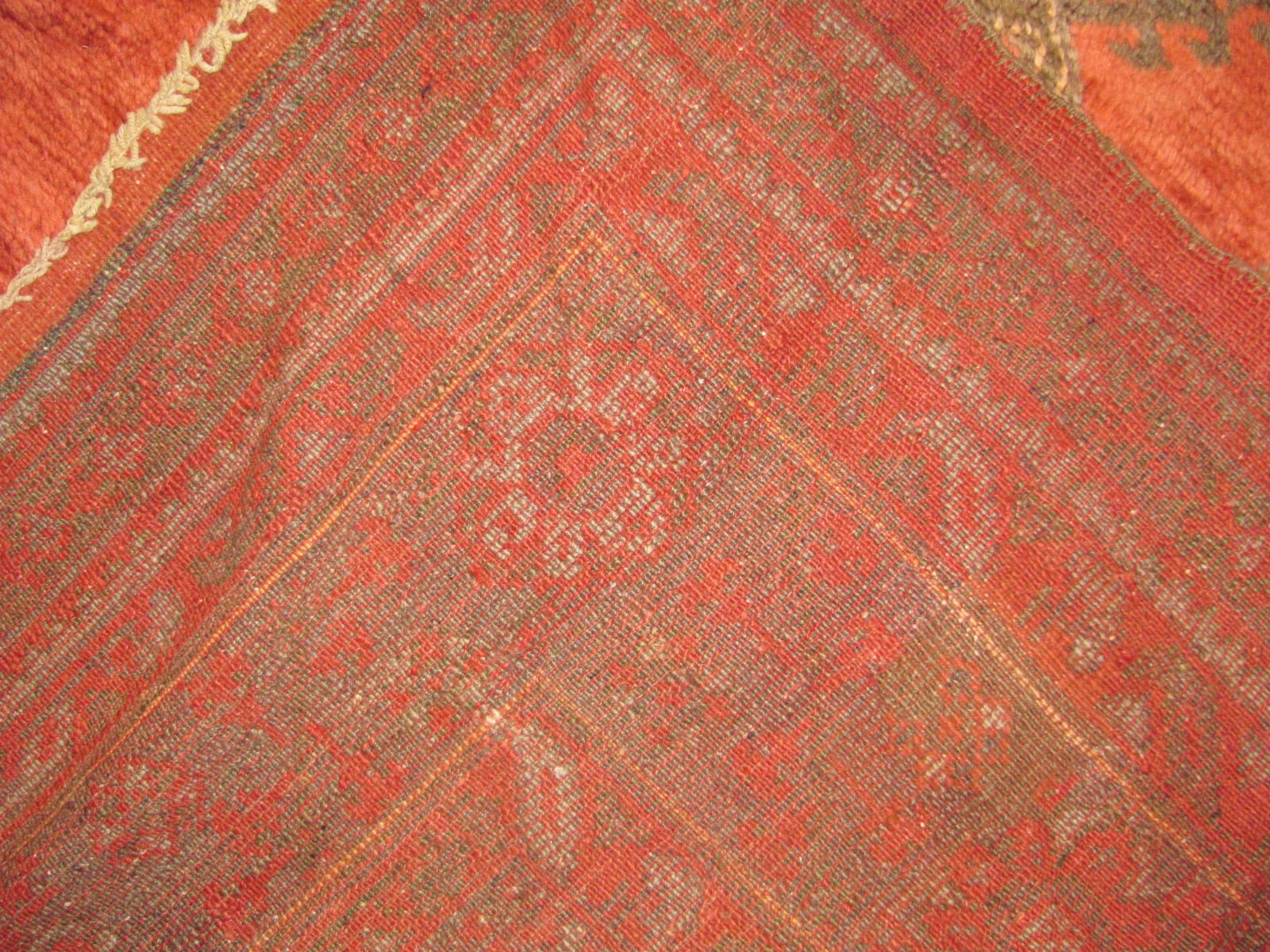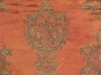 The distinctive style and color of Oushak Rugs include shades of orange color. Some of the most popular shades are salmon, coral, cinnabar, etc. These shades are combined with hues of maroon, blue and red. This color combination makes them very attractive and unique. The motifs are generally of varied colors which include browns, blues, yellow, green, black and ivory. The base is made of wool and the use of symmetrical knot for structure is in abundance.