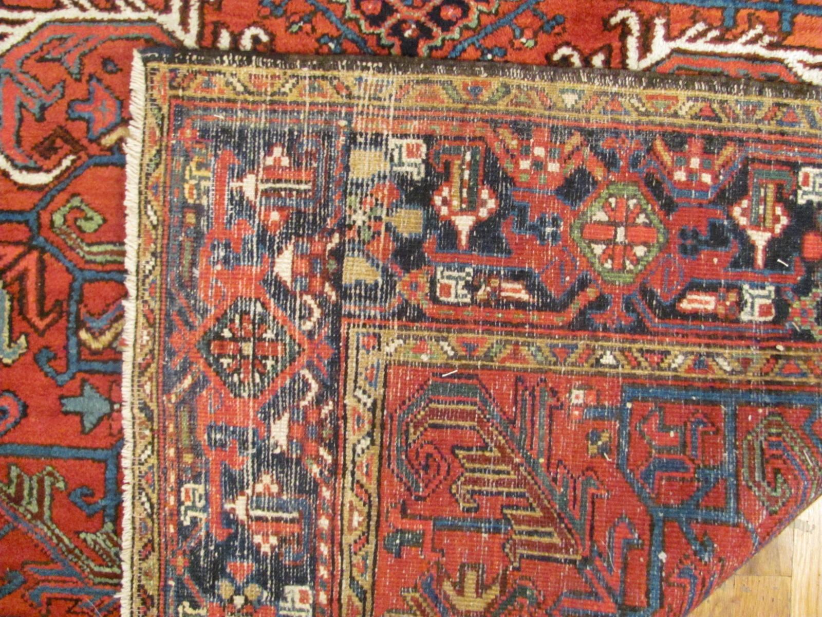 Persian and Oriental rugs are very popular with interior decorators and homeowners for their beauty, individuality and bold colors.   They can be paired with many different types of furniture and looks.  In fact, these rugs are so versatile that they can be moved from space to space as your tastes and needs change.  In addition, the heavy wool pile is both soft and luxurious as well as practical in providing warmth and trapping heat.  Heriz rugs are one of many types of antique oriental rugs available at Aviram Aziz Inc.  We are proud to carry a large selection of antique rugs including Persian, Indian, Turkish, Caucasian, Chinese and European rugs.  No matter what you are in the market for, one of our experts is here to find you just what you are looking for and to verify the rugs origins.
