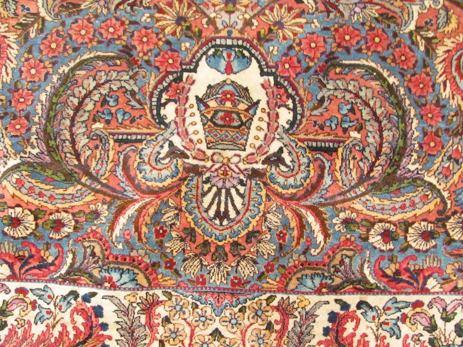 Aviram Aziz Inc. is the place to find these high quality Kerman rugs from Iran.  We also carry a wide variety and selection of antique Oriental style rugs from other locations including Indian, Turkish, Caucasian, Chinese and European rugs. Choosing a Persian style rug should be a fun and enjoyable task.   These works of art come in a vast array of color palettes ranging from soft golden and beige to bold rich brillant colors sure to make a statement to anyone who comes upon them.  You will have trouble deciding whether or not to put these amazing creations on the floor or keep them safe from walkers by hanging them on your walls.  In fact, many of the famous master weavers used fine silks woven into the carpets to create the antique Kerman and other Persian rugs and numerous collectors hang these masterpieces on the walls.