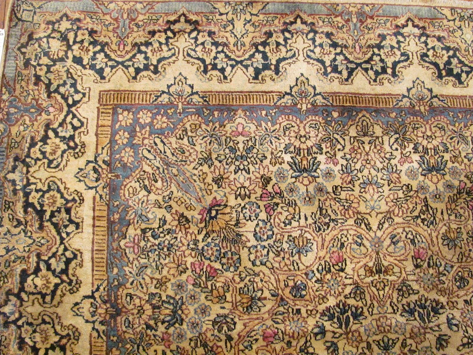 Aviram Aziz Inc. is the place to find these high quality Kerman rugs from Iran.  We also carry a wide variety and selection of antique Oriental style rugs from other locations including Indian, Turkish, Caucasian, Chinese and European rugs. Choosing a Persian style rug should be a fun and enjoyable task.   These works of art come in a vast array of color palettes ranging from soft golden and beige to bold rich brillant colors sure to make a statement to anyone who comes upon them.  You will have trouble deciding whether or not to put these amazing creations on the floor or keep them safe from walkers by hanging them on your walls.  In fact, many of the famous master weavers used fine silks woven into the carpets to create the antique Kerman and other Persian rugs and numerous collectors hang these masterpieces on the walls.