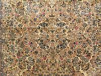 Kerman rugs are renowned for distinct design patterns.  The most recognizable pattern within Kerman carpets was coined the vase carpet pattern.  This specific pattern arose in the late 16th century and early 17th century and refers to rugs with scattered vases within a background of flowers, palmettes or similar motifs using an all over pattern.  This unique and storied pattern was desired by many.  Other Kerman carpets had exquisite curvilinear all over design patterns that demonstrate the amazing skills of the weavers. Some rugs had complex central medallions with complex edges again illustrating the superior craftsmanship of the master weavers.