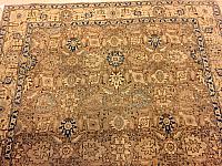 Tabriz rugs are made with either a pile or flat weave and with very simple to more complex composition.  Each rug is hand woven and hand knotted such that each artist creates a one of a kind product.  Persian rug quality is sometimes determined by knot density or rajs.  The higher the raj number or knot density, the finer the quality of the rug.  Tabriz rugs range from 24 raj to 110 raj.  The thread used to weave the rug is either cotton or silk.