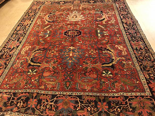 Persian and Oriental rugs are very popular with interior decorators and homeowners for their beauty, individuality and bold colors.   They can be paired with many different types of furniture and looks.  In fact, these rugs are so versatile that they can be moved from space to space as your tastes and needs change.  In addition, the heavy wool pile is both soft and luxurious as well as practical in providing warmth and trapping heat.  Heriz rugs are one of many types of antique oriental rugs available at Aviram Aziz Inc.  We are proud to carry a large selection of antique rugs including Persian, Indian, Turkish, Caucasian, Chinese and European rugs.  No matter what you are in the market for, one of our experts is here to find you just what you are looking for and to verify the rugs origins.