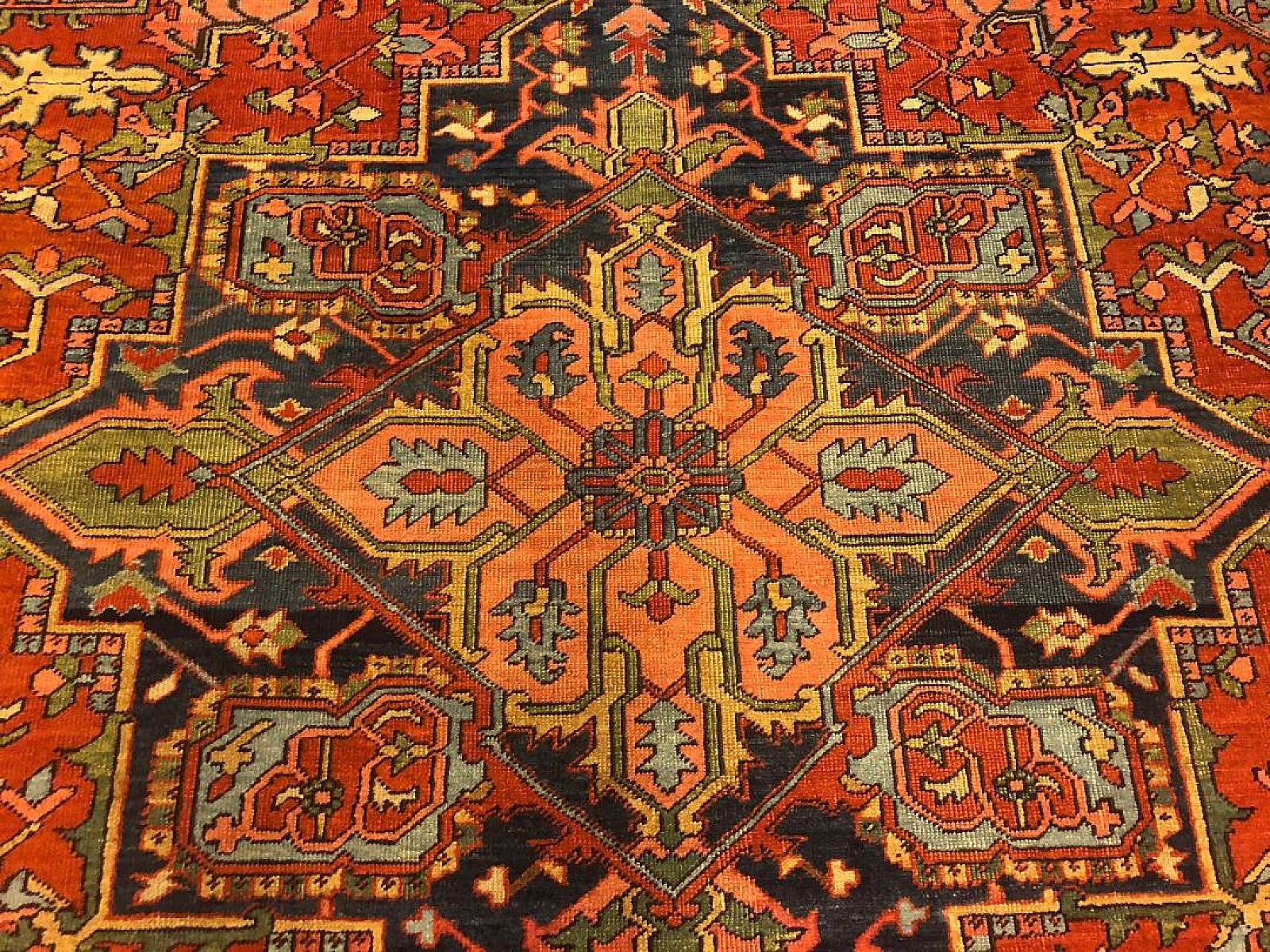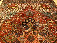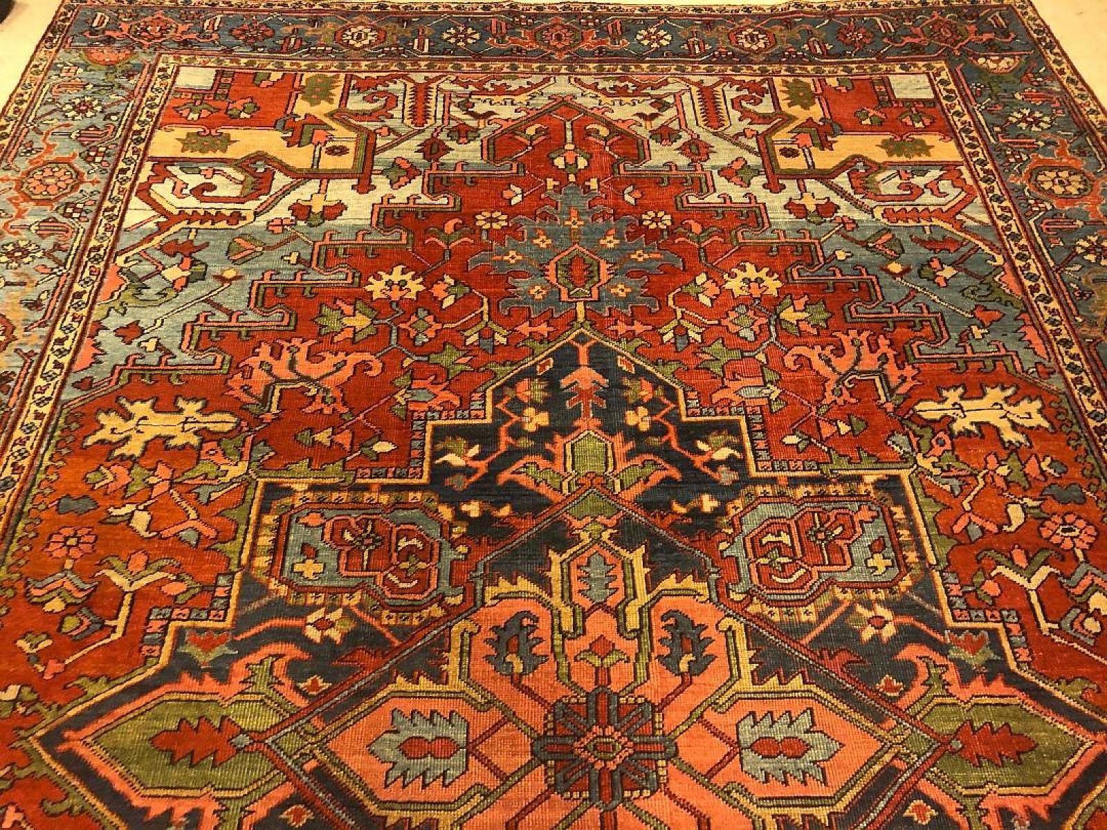 Persian and Oriental rugs are very popular with interior decorators and homeowners for their beauty, individuality and bold colors.   They can be paired with many different types of furniture and looks.  In fact, these rugs are so versatile that they can be moved from space to space as your tastes and needs change.  In addition, the heavy wool pile is both soft and luxurious as well as practical in providing warmth and trapping heat.  Heriz rugs are one of many types of antique oriental rugs available at Aviram Aziz Inc.  We are proud to carry a large selection of antique rugs including Persian, Indian, Turkish, Caucasian, Chinese and European rugs.  No matter what you are in the market for, one of our experts is here to find you just what you are looking for and to verify the rugs origins.