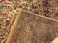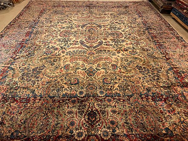 Whether you are in the market for Kerman rugs or other antique Oriental carpets, choosing the right size to meet your needs is imperative.  Our rug experts are available to guide you throughout the entire selection process.  Choosing the right colors, the right size and style and patterns are all tasks our staff will gladly assist you with.  Aviram Aziz Inc. has a wide selection of antique carpets ranging in size from scatter smaller throw rugs great for small or unusual spaces to larger carpets good for grand spaces.  No matter the size or style you are looking for, we are here to help you select just what you are looking for.  Although we have a wide selection, we concentrate in Aubussons, Heriz and Serapi, Sarouk, Sultanabad, Tabriz, Oushak, and Lavar and Kerman rugs.