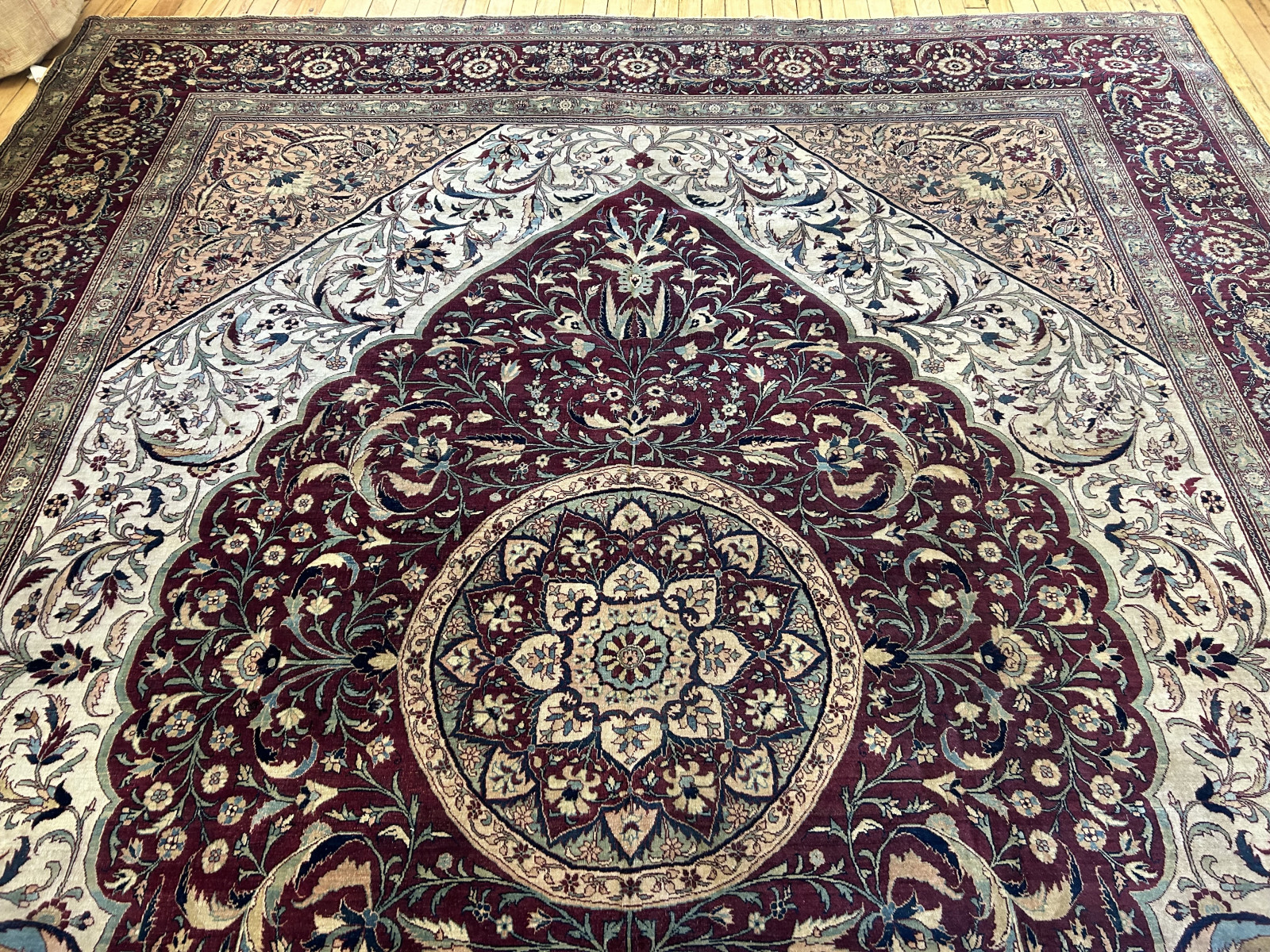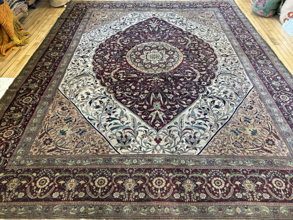 We welcome you to the Aviram Aziz Inc, your source for Antique and Decorative Rugs. Tabriz rugs, a type of Persian rug, are known worldwide for their excellent weave quality and traditional beauty.  These rugs are named for the city of Tabriz, currently the capital city of East Azarbaijan Province in Iran.  The tradition of rug making in Tabriz dates back as far as the 12th century.  Carpet weaving in Persia has a rich and storied history and is a major part of this region’s ancient culture and art.   Initially, these fine rugs were created for practical reasons-to cover a cold floor.  As time went on, the quality and design of the rugs turned these into works of art and beauty that begin to symbolize the wealth and stature of the owners.   Towards the end of the 19th century, rug merchants began to export these fine works of art to the Western world, predominantly Europe.   The rug and carpet weavers were very skilled at creating patterns and designs that appealed to foreign consumers.  That tradition continues today.