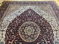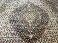 Tabriz rugs are made with either a pile or flat weave and with very simple to more complex composition.  Each rug is hand woven and hand knotted such that each artist creates a one of a kind product.  Persian rug quality is sometimes determined by knot density or rajs.  The higher the raj number or knot density, the finer the quality of the rug.  Tabriz rugs range from 24 raj to 110 raj.  The thread used to weave the rug is either cotton or silk.